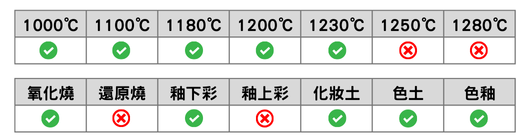 2.可用來調製成化妝土/泥、色釉、釉下彩、色土、釉下鉛筆…等。請注意要調合的原料有沒有鋅,鋅會改變色料發色,尤其是綠色改變最大,紅色則可能會不紅。