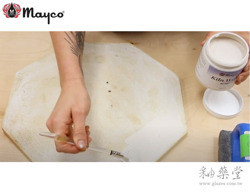 硼板隔離劑(Kiln Wash)塗刷於硼板表面,當硼板表面有沾黏釉藥時,先將釉藥清除乾淨後,再塗刷,增加硼板使用壽命。